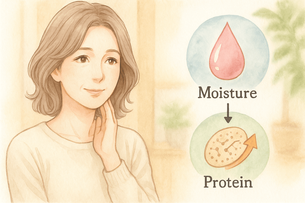 これらが髪内部の水分とタンパク質バランスを整え、ハリ・コシ・ツヤを取り戻します。
