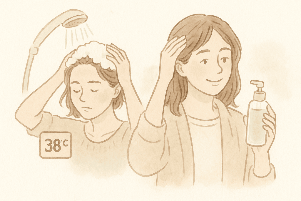 「お湯だけで予洗いする時間」を見直すだけで、頭皮ダメージは大きく減ります。