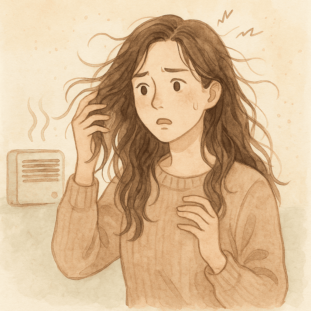 冬の室内湿度は30%台になることもあり、これは肌の水分が蒸発しやすい環境です。特に暖房の風が直接当たる状態が続くと、毛穴まわりの角質が硬くなり、髪が抜けやすくなります。