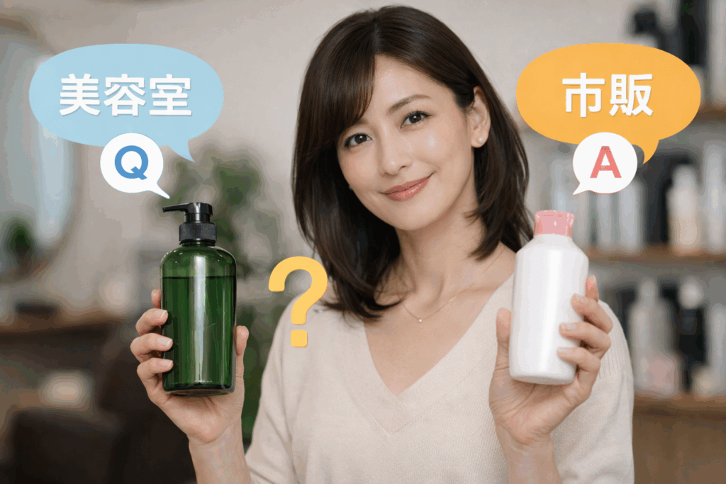 その場の使いやすさなら市販、将来の髪と頭皮まで考えるなら美容室シャンプーです。
