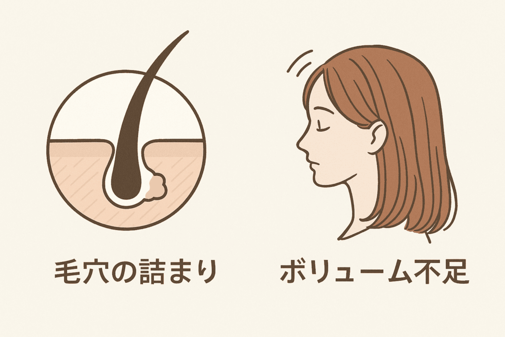 「かゆみ」「乾燥フケ」「頭皮の硬さ」が表面化します。